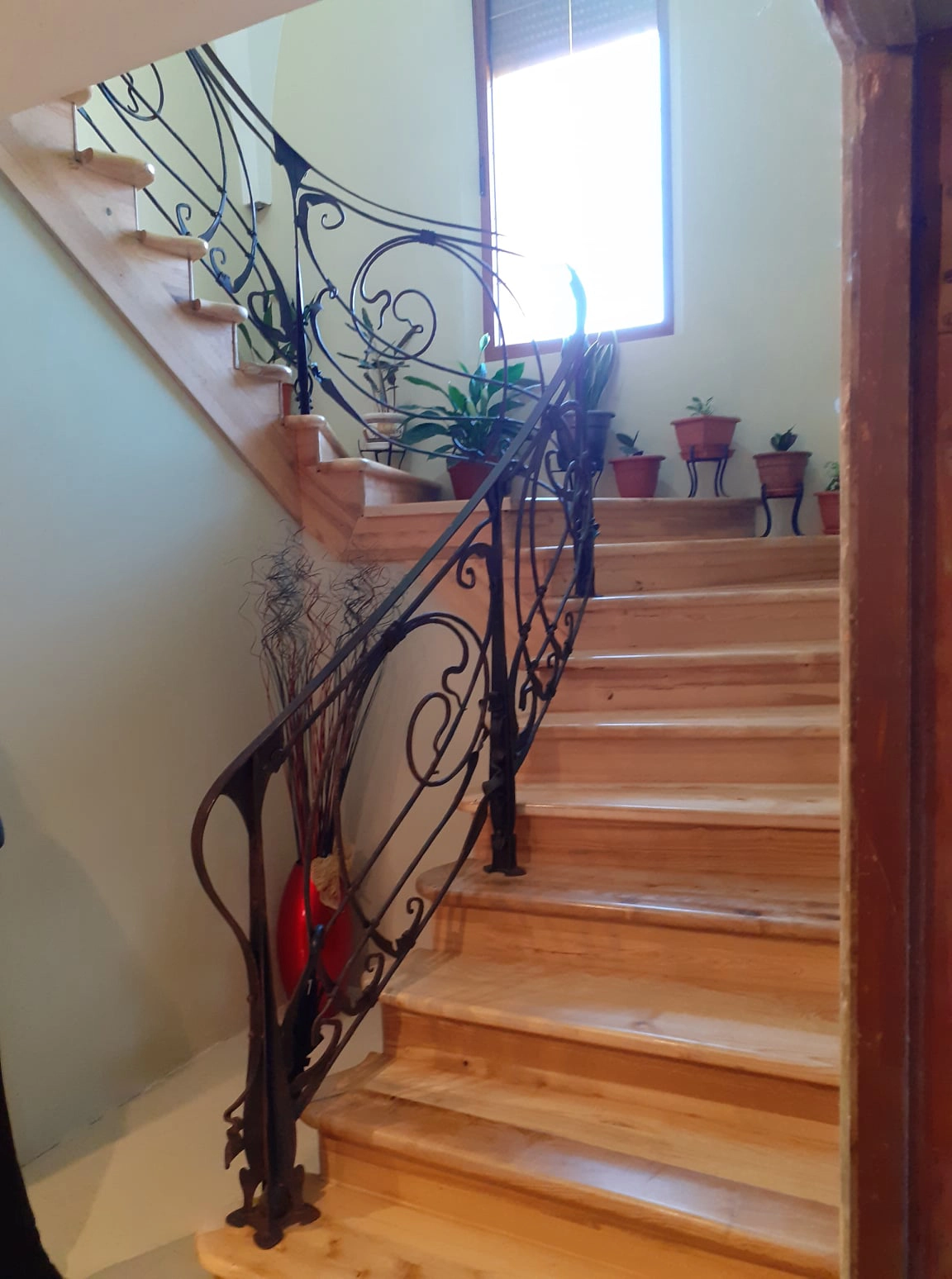 Vivienda unifamiliar en la que utilizamos lenguaje modernista a petición de la propiedad. Se contó con la colaboración de varios artesanos de forja y madera. Desarrollada en tres plantas, en el semisótano nos encontramos dependencias auxiliares, tras la entrada un vestíbulo que distribuye a un salón-comedor que da a una terraza cubierta, cocina, despacho y baño. La primera planta con tres dormitorios, alguno con vestidor y baño, un baño general y un vestíbulo.