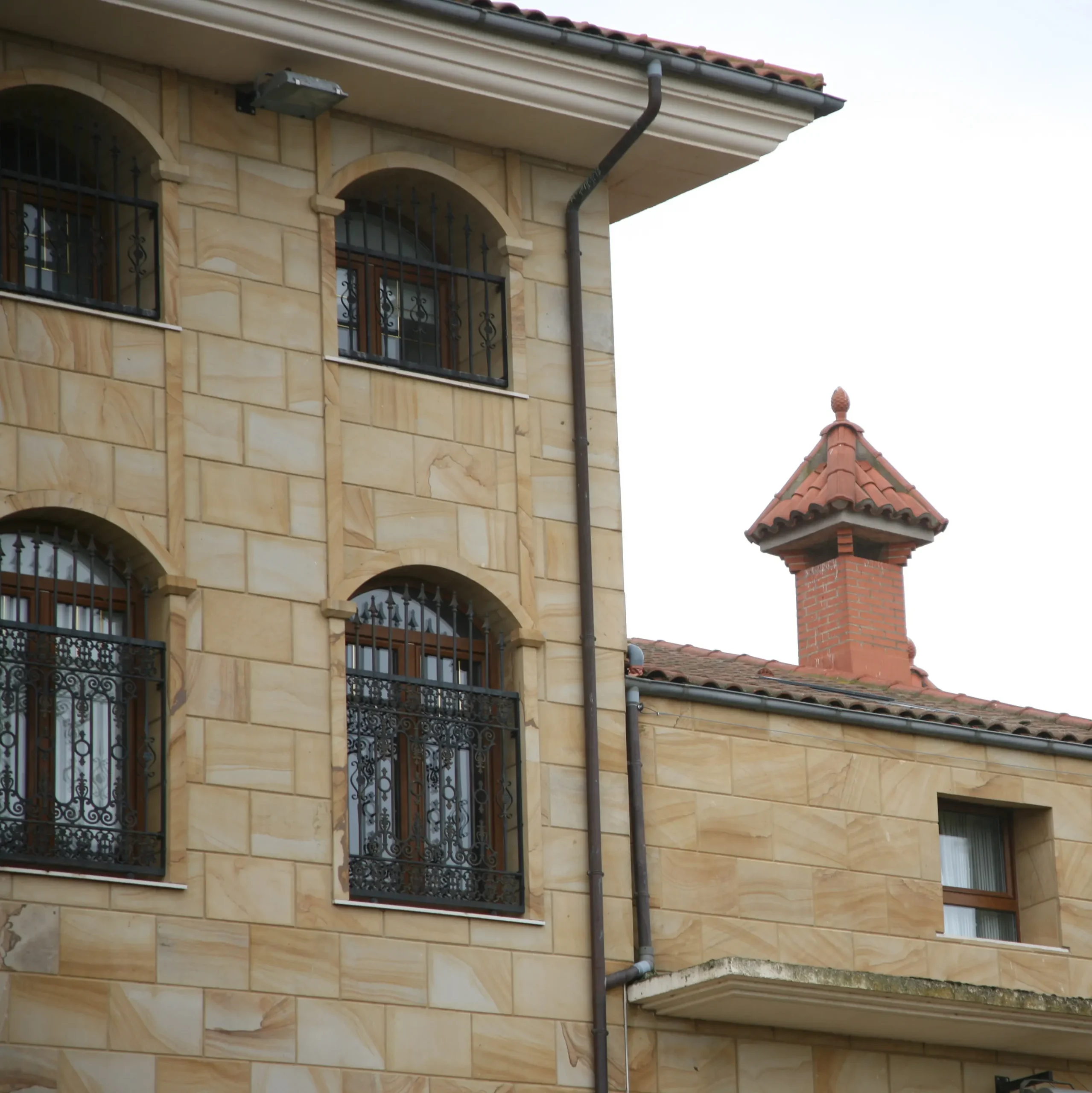 Además de las distintas plantas y la torre en la esquina, la composición se remata con un patio inglés a la que da el comedor principal.