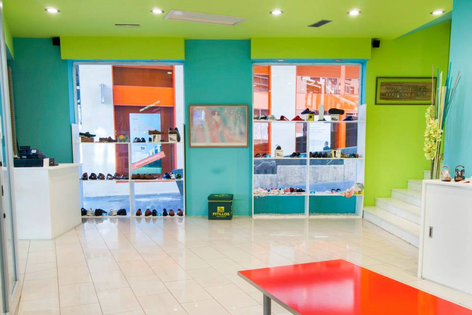 Acondicionamos este céntrico local, con cambio de uso incluido, para venta de bolsos y zapatos. Sus recintos son los canónicos para este tipo de negocios: zona de venta, de almacenaje, aseo y distribuidor con vestíbulo (en este caso con escalera incluida).
